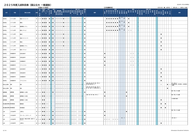 2025年度入試科目表 (国公立大 一般選抜)
