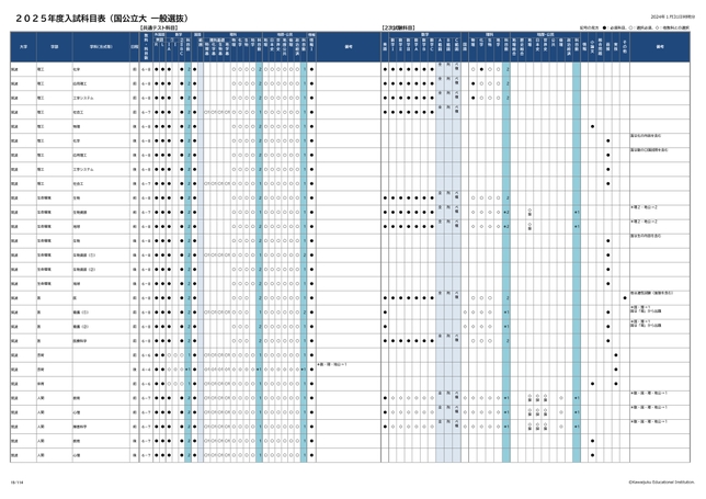 2025年度入試科目表 (国公立大 一般選抜)