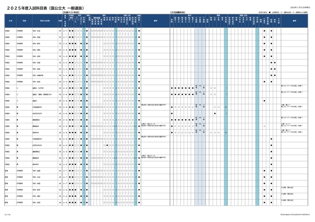 2025年度入試科目表 (国公立大 一般選抜)