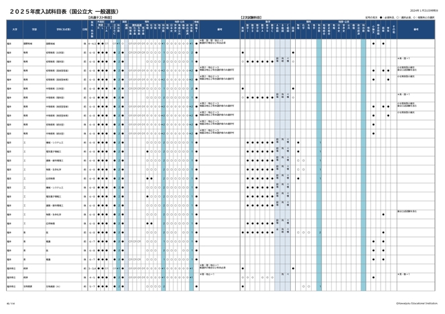 2025年度入試科目表 (国公立大 一般選抜)