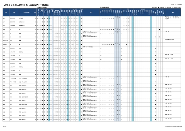 2025年度入試科目表 (国公立大 一般選抜)