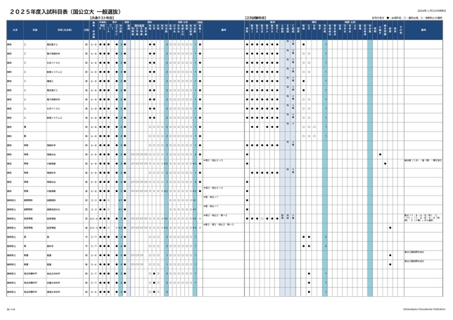 2025年度入試科目表 (国公立大 一般選抜)