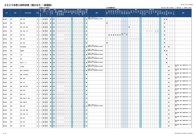2025年度入試科目表 (国公立大 一般選抜)