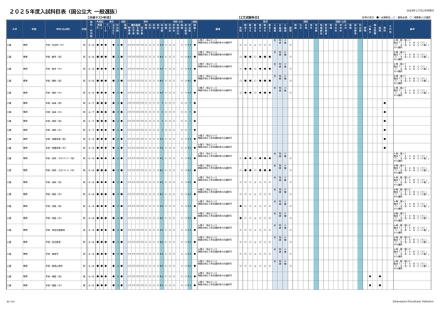 2025年度入試科目表 (国公立大 一般選抜)