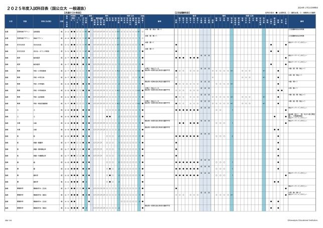 2025年度入試科目表 (国公立大 一般選抜)