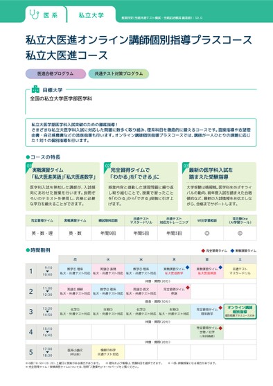 医進合格プログラム共通テスト対策プログラム010203123459:1010:4011:0012:3013:2014:5015:1016:4017:0018:30※