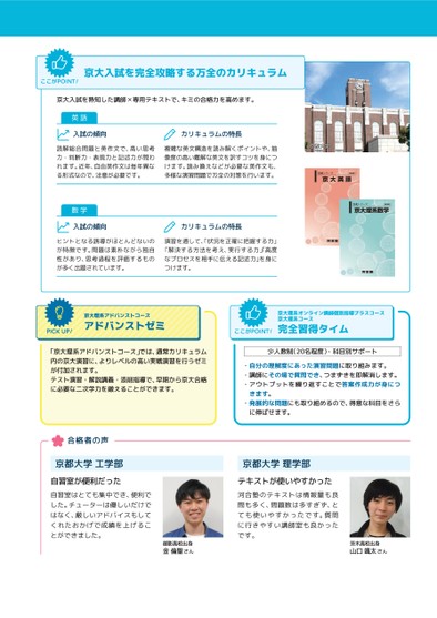 近畿地区の大学受験科のデジタルカタログ。コース案内や申込方法、授業料など、大学受験科に関する情報をお届けします。大学受験の予備校、学校法人河合塾の公式サイトをご利用ください。