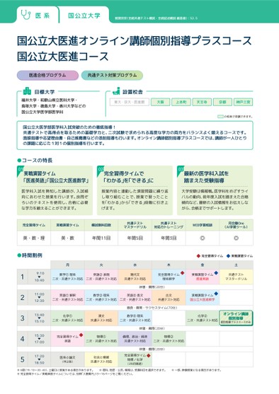 医進合格プログラム共通テスト対策プログラム010203123459:1010:4011:0012:3013:4015:1015:3017:0017:2018:50※