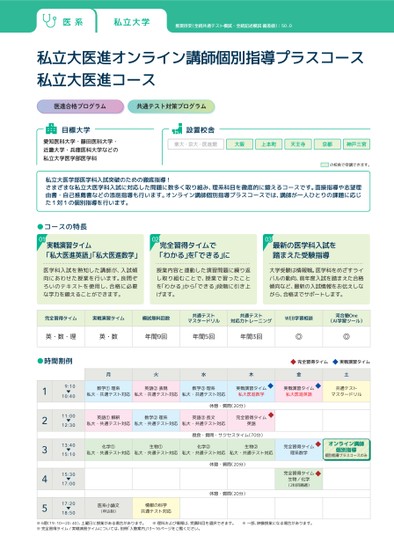 医進合格プログラム共通テスト対策プログラム010203123459:1010:4011:0012:3013:4015:1015:3017:0017:2018:50※