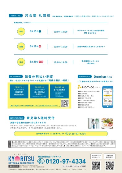 河合塾大学受験科 指定寮・学生会館案内_北海道版_共立メンテナンス