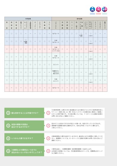 共同設備室内設備男子寮女子寮男女電子レンジミニキッチンエアコンインターネット接続端子ベランダバルコニー本棚・テレビ台机・椅子冷蔵庫洗濯機ベッドバス・トイレコピー機駐輪場エレベーターキッチン自動販売機ランドリールーム電子レンジ食堂談話室自習室○○○○ーーー○ーーセパレート○○○○○※本棚のみ○○※Wi-Fi○ーー○○○○○※乾燥機室○ー○○○3点セパレート○○○○○○○○ー○○○○○○ー3点セパレート(シャワーのみ)○ー○○○○○○ー○○○○○○ー3点セパレート○ー○○○○○※Wi-Fi○※Wi-Fi○※Wi-Fi○○○○ー○○ー○○○○○○○○○○○ユニット○ー○○○ー○○ーー○ーー○○○ー○ーー○ーー○○○○○○ー※部屋のタイプによって異なります。3点ユニット○ー○○ーー○ー○○○○○※Wi-Fi○※Wi-Fi○○ー○ーー○ー○ー○○○○ー○セパレート○ー○○ー○○○○ーQ寮を見学することは可能ですか?Q自室の掃除や洗濯は自分でするのですか?Qいつから入寮できますか?Q入寮費などの費用はいつまでに支払わないといけないのでしょうか?AAAA「大阪榮冠寮」は東大·京大·医進館または大阪校どちらかの入塾希望校舎に、「ドーミー京都二条」は(株)共立メンテナンス京都支店に事前にご連絡いただくと見学可能です。その他の寮については、7・8ページに記載の各寮のお問い合わせ先にご連絡ください。自分のことは自分でするのが自立への第一歩。各自で行っていただきます。掃除機や洗濯機の操作は簡単なので、初めは戸惑ってもすぐに慣れます。ご安心ください。大阪榮冠寮は入寮日を設けていますので、基本的にはその期間に入寮してください。推薦寮については、6〜8ページに記載の各寮のお問い合わせ先にご連絡ください。入寮申込後に、入寮関係書類(契約関係書類)を送付します。お手続きの詳細については、河合塾専用寮は11ページを、推薦寮は13ページをご確認ください。