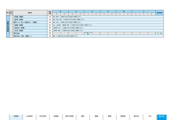 9090909090授業分数9090909090授業分数90909090木村・渡部※ご都合にあわせて校舎でご視聴ください。小松・中村※ご都合にあわせて校舎でご視聴ください。19:50〜21:20原田月19:50〜21:20北野火5656上田(善)・菅井横井※ご都合にあわせて校舎でご視聴ください。※ご都合にあわせて校舎でご視聴ください。水519:50〜21:206仲清水・永島・成合※ご都合にあわせて校舎でご視聴ください。18:00〜19:30香川野村・中村都合にあわせて校舎でご視聴ください。さい。井上・上田(善)・一番合戦・菅井月水※ご都合にあわせて校舎でご視聴ください。火一番合戦・井上5※ご都合にあわせて校舎でご視聴ください。上田(善)・菅井※ご都合にあわせて校舎でご視聴ください。野村※ご都合にあわせて校舎でご視聴ください。5618:00〜19:30香川木木665519:50〜21:20瀬古金金665544土5土566----映像授業木下・成川映像授業木下・成川講座名TH物理(映像)TH化学(映像)標準英語標準数学標準現代文標準古文S古文(映像)英文法★映像)漢文文法・句形(映像)*(映像)S国語(映像)S現代文(映像)S古文(映像)英文法★漢文文法・句形(映像)*講座名--受験対策講座受験対策講座受験対策講座大阪-教科申込区分-大阪---教科申込区分3ページ18144.csv校了時削除●224度/51/近畿/大阪/高2生/パターン6614/2024_51_5_511_32_20230828181544.csv●2024年度/51/近畿/大阪/高生/パタン25_511_32_2030828181544.csv校了削除3ページ大阪校上本町校天王寺校京都校神戸三宮校豊中高槻堺東岸和田西大寺八木高2生校了時削除