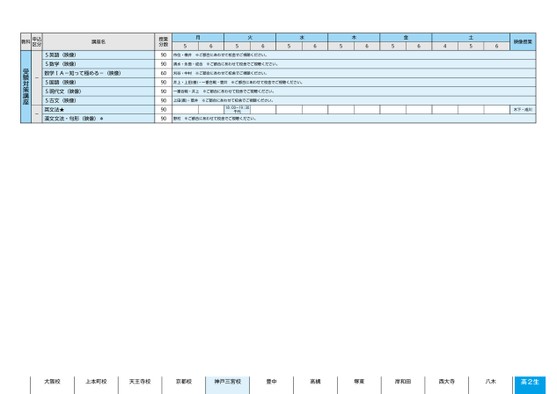 9090909090授業分数90909060909090授業分数9090木村・渡部※ご都合にあわせて校舎でご視聴ください。小松・中村※ご都合にあわせて校舎でご視聴ください。19:50〜21:20清水月火水木56565野村・横井都合にあわせて校舎でご視聴ください。さい。清水・永島・成合※ご都合にあわせて校舎でご視聴ください。刈谷・中村※ご都合にあわせて校舎でご視聴ください。井上・上田(善)・一番合戦・菅井※ご都合にあわせて校舎でご視聴ください。一番合戦・井上※ご都合にあわせて校舎でご視聴ください。上田(善)・菅井月※ご都合にあわせて校舎でご視聴ください。火水5618:00〜19:305千代65野村※ご都合にあわせて校舎でご視聴ください。6618:00〜19:305伊賀木5金金66556618:00〜19:30湘田土5土54419:50〜21:20一番合戦66--映像授業--映像授業木下・成川講座名TH物理(映像)TH化学(映像)標準英語標準数学標準現代文標準古文漢文文法・句形(映像)*S数学(映像)数学ⅠA-知って極める-(映像)S国語(映像)S現代文(映像)S古文(映像)英文法★漢文文法・句形(映像)*講座名神戸三宮-教科申込区分-受験対策講座-神戸三宮-教科申込区分--受験対策講座受験対策講座_20230828181544.csv●204年度/51/近畿/神戸三宮/高2生/パターン6614/2024_51_5_514_32_20230828181544.csv024年度/51/近畿/神戸三宮/高2生/パタン12024_51_5_51432_20230828181544.csv校了時削除校了時3ペー大阪校上本町校天王寺校京都校神戸三宮校豊中高槻堺東岸和田西大寺八木高2生校了時削除