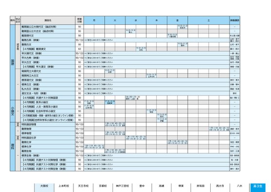 大阪校上本町校天王寺校京都校神戸三宮校豊中高槻堺東岸和田西大寺八木高3生月火水木18:00〜19:30阪上19:50〜20:50永松18:00〜19:30山本(ま)17:20〜18:50神坂18:00〜19:30奥村・上田・畑19:10〜20:4019:10〜20:40宮元伊藤土金19:50〜21:20佐佐木18:00〜19:30一番合戦19:50〜21:20菅井1月〜)18:40〜20:104月〜)18:40〜21:20吉田1月〜)18:40〜20:104月〜)18:40〜21:20古川映像講師--井上・佐藤井上(真)佐藤山村・坂下藤川・西川山村・坂下藤川・西川一瀬・菱山佐河・阿部髙橋・打越佐河・阿部髙橋・打越--奥村・青木近藤・菅井重盛・松浦野村福永・伊藤・江------渡部・坂本佐々木・木村-寺田・青野中村・小松向井・三浦牧島・西尾(健)乾・大學安達・西尾(源)唐牛・長井1月〜)18:40〜20:104月〜)18:40〜21:20瀧澤1月〜)18:40〜20:104月〜)18:40〜21:20大學1月〜)18:40〜20:104月〜)18:40〜21:20古川1月〜)18:40〜20:104月〜)18:40〜21:20西1月〜)18:40〜20:104月〜)18:40〜21:20西尾4月~)18:0~2:2西尾(健)90/150※ご都合にあわせてご視聴ください909090※ご都合にあわせてご視聴ください※ご都合にあわせてご視聴ください※ご都合にあわせてご視聴ください90/150※ご都合にあわせてご視聴ください906090/150※ご都合にあわせてご視聴ください90/150※ご都合にあわせてご視聴ください※ご都合にあわせてご視聴ください※ご都合にあわせてご視聴ください18:00〜19:30北野※ご都合にあわせてご視聴ください※ご都合にあわせてご視聴ください※ご都合にあわせてご視聴ください※ご都合にあわせてご視聴ください17:20〜18:50加賀17:20〜18:50山本(和)17:20〜18:5050加賀▼加賀授業分数909090906090909090909090909090909090/15090/15090/15090/15090/15090/15090/150難関国公立大現代文(論述対策)難関国公立大古文(論述対策)難関現代文難関古典(映像)難関古文【4月開講】難関漢文早大現代文(映像)早大古典(映像)早大古文(映像)【4月開講】早大漢文(映像)関関同立大現代文関関同立大古文標準現代文(映像)標準古文(映像)私大古文(映像)漢文文法・句形(映像)【4月開講】共通テスト対策国語【4月開講】医系小論文【4月開講】人文・教育系小論文【4月開講】社会科学系小論文【4月開講】看護・保健・歯学系小論文(オンライン授業)【4月開講】自然科学系小論文(オンライン授業)特別選抜物理難関物理標準物理特別選抜化学難関化学標準化学難関生物標準生物(映像)【4月開講】共通テスト対策物理(映像)【4月開講】共通テスト対策化学(映像)【4月開講】共通テスト対策生物(映像)認定制--認定制-認定制-国語小論文理科大阪教科申込区分講座名3ページ●2025年度/51/近畿/大阪/高3・卒生/パターン6617/2025_51_5_511_11_20240815170731.csv2校了時削除