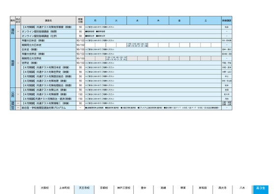 大阪校上本町校天王寺校京都校神戸三宮校豊中高槻堺東岸和田西大寺八木高3生月火水木金土映像講師松永--大内・坂本(勝)-田中・西川坂本(新)・沼田-平尾・平松中垣・宮本大野・山口井上中村・中土居松本吉見佐々木河合小野・加賀佐藤・山家●出願書類対策(必須受講)●面接対策(選択制)●小論文対策(選択制)●【プレミアム】過去問対策(選択制)●慶大対策<(法)FITA方式/(法)FITB方式/(文)自主応募制推薦>-※ご都合にあわせてご視聴ください●難関物理●標準物理●難関化学●標準化学90/150※ご都合にあわせてご視聴ください90/15090/150※ご都合にあわせてご視聴ください90/150※ご都合にあわせてご視聴ください90/1501月〜)18:40〜20:104月〜)18:40〜21:20井上90/150※ご都合にあわせてご視聴ください1月〜)18:40〜20:104月〜)18:40〜21:20小倉※ご都合にあわせてご視聴ください※ご都合にあわせてご視聴ください※ご都合にあわせてご視聴ください※ご都合にあわせてご視聴ください※ご都合にあわせてご視聴ください※ご都合にあわせてご視聴ください※ご都合にあわせてご視聴ください※ご都合にあわせてご視聴ください※ご都合にあわせてご視聴ください授業分数90909090909090909015015090-講座名【4月開講】共通テスト対策地学基礎(映像)オンライン個別指導講座(物理)オンライン個別指導講座(化学)早慶大日本史(映像)関関同立大日本史日本史(映像)早慶大世界史(映像)関関同立大世界史世界史(映像)【4月開講】共通テスト対策日本史(映像)【4月開講】共通テスト対策世界史(映像)【4月開講】共通テスト対策歴史総合(映像)【4月開講】共通テスト対策地理(映像)【4月開講】共通テスト対策地理総合(映像)【4月開講】共通テスト対策公共(映像)【4月開講】共通テスト対策倫理(映像)【4月開講】共通テスト対策政治・経済(映像)【4月開講】共通テスト対策情報Ⅰ(映像)総合型・学校推薦型選抜対策プログラム教科申込区分-理科-地歴---公民情報総合天王寺5ページ●2025年度/51/近畿/天王寺/高3・卒生/パターン6617/2025_51_5_515_11_20240819192226.csv校了時削除