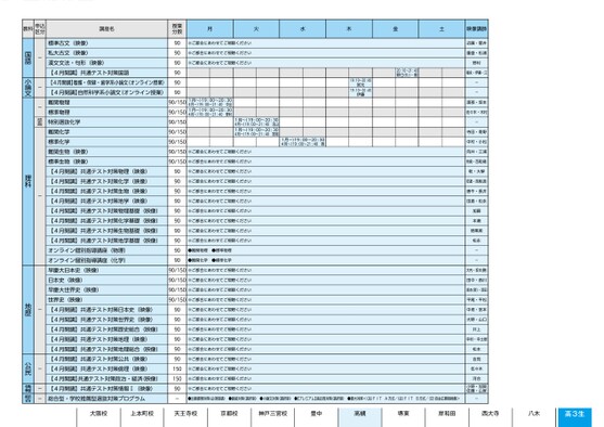大阪校上本町校天王寺校京都校神戸三宮校豊中高槻堺東岸和田西大寺八木高3生●出願書類対策(必須受講)●面接対策(選択制)●小論文対策(選択制)●【プレミアム】過去問対策(選択制)●慶大対策<(法)FITA方式/(法)FITB方式/(文)自主応募制推薦>-教科申込区分講座名高槻教室ページ●2025年度/51/近畿/高槻教室/高3・卒生/パターン6617/2025_51_5_540_11_20240815170731.csv54ページ校了時削除●2025年度/51/近畿/高槻教室映像講師近藤・菅井重盛・松浦野村福永・伊藤・江--渡部・坂本佐々木・木村-寺田・青野中村・小松向井・三浦牧島・西尾(健)乾・大學安達・西尾(源)唐牛・長井田島・松永加藤本瀬野黒美松永--大内・坂本(勝)田中・西川坂本(新)・沼田平尾・平松中垣・宮本大野・山口井上中村・中土居映像講師松本吉見佐々木河合小野・加賀佐藤・山家授業分数90909090909090/15090/15090/15090/15090/150月火水木金土※ご都合にあわせてご視聴ください※ご都合にあわせてご視聴ください※ご都合にあわせてご視聴ください1月〜)19:00〜20:304月〜)19:00〜21:40中出1月〜)19:00〜20:304月〜)19:00〜21:40野村1月〜)19:00〜20:304月〜)19:00〜21:40北山1月〜)19:00〜20:304月〜)19:00〜21:40宮路1月〜)19:00〜20:304月〜)19:00〜21:40西20:10〜21:40野口(た)・堀19:10〜20:4019:10〜20:40宮元伊藤90/150※ご都合にあわせてご視聴ください90/150※ご都合にあわせてご視聴ください90909090909090909090※ご都合にあわせてご視聴ください※ご都合にあわせてご視聴ください※ご都合にあわせてご視聴ください※ご都合にあわせてご視聴ください※ご都合にあわせてご視聴ください※ご都合にあわせてご視聴ください※ご都合にあわせてご視聴ください※ご都合にあわせてご視聴ください●難関物理●標準物理●難関化学●標準化学90/150※ご都合にあわせてご視聴ください90/150※ご都合にあわせてご視聴ください90/150※ご都合にあわせてご視聴ください90/150※ご都合にあわせてご視聴ください月※ご都合にあわせてご視聴ください※ご都合にあわせてご視聴ください※ご都合にあわせてご視聴ください※ご都合にあわせてご視聴ください※ご都合にあわせてご視聴ください※ご都合にあわせてご視聴ください※ご都合にあわせてご視聴ください※ご都合にあわせてご視聴ください※ご都合にあわせてご視聴ください火水木金土90909090授業分数909015015090-標準古文(映像)私大古文(映像)漢文文法・句形(映像)【4月開講】共通テスト対策国語【4月開講】看護・保健・歯学系小論文(オンライン授業)【4月開講】自然科学系小論文(オンライン授業)難関物理標準物理特別選抜化学難関化学標準化学難関生物(映像)標準生物(映像)【4月開講】共通テスト対策物理(映像)【4月開講】共通テスト対策化学(映像)【4月開講】共通テスト対策生物(映像)【4月開講】共通テスト対策地学(映像)【4月開講】共通テスト対策物理基礎(映像)【4月開講】共通テスト対策化学基礎(映像)【4月開講】共通テスト対策生物基礎(映像)【4月開講】共通テスト対策地学基礎(映像)オンライン個別指導講座(物理)オンライン個別指導講座(化学)早慶大日本史(映像)日本史(映像)早慶大世界史(映像)世界史(映像)【4月開講】共通テスト対策日本史(映像)【4月開講】共通テスト対策世界史(映像)【4月開講】共通テスト対策歴史総合(映像)【4月開講】共通テスト対策地理(映像)【4月開講】共通テスト対策地理総合(映像)【4月開講】共通テスト対策公共(映像)【4月開講】共通テスト対策倫理(映像)【4月開講】共通テスト対策政治・経済(映像)【4月開講】共通テスト対策情報Ⅰ(映像)総合型・学校推薦型選抜対策プログラム講座名高槻教室-地歴教科申込区分---公民情報総合---認定制-国語小論文理科