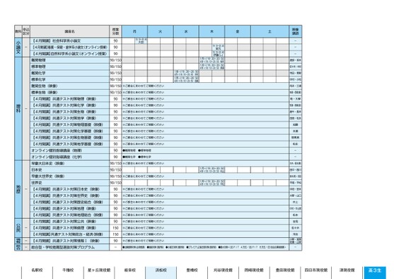 授業分数90909090/15090/15090/15090/150月火水木金土19:10〜20:40大田1月〜)19:20〜20:504月〜)18:10〜20:50中村1月〜)19:20〜20:504月〜)18:10〜20:50田島19:10〜20:40宮元19:10〜20:40伊藤(し)1月〜)19:20〜20:504月〜)18:10〜20:50坂本1月〜)19:20〜20:504月〜)18:10〜20:50西浦90/150※ご都合にあわせてご視聴ください90/150※ご都合にあわせてご視聴ください90909090909090909090※ご都合にあわせてご視聴ください※ご都合にあわせてご視聴ください※ご都合にあわせてご視聴ください※ご都合にあわせてご視聴ください※ご都合にあわせてご視聴ください※ご都合にあわせてご視聴ください※ご都合にあわせてご視聴ください※ご都合にあわせてご視聴ください●難関物理●標準物理●難関化学●標準化学90/150※ご都合にあわせてご視聴ください90/15090/150※ご都合にあわせてご視聴ください90/1501月〜)19:20〜20:50村山4月〜)18:10〜20:501月〜)19:20〜20:504月〜)18:10〜20:50平松※ご都合にあわせてご視聴ください※ご都合にあわせてご視聴ください※ご都合にあわせてご視聴ください※ご都合にあわせてご視聴ください※ご都合にあわせてご視聴ください※ご都合にあわせてご視聴ください※ご都合にあわせてご視聴ください※ご都合にあわせてご視聴ください※ご都合にあわせてご視聴ください90909090909015015090-●出願書類対策(必須受講)●面接対策(選択制)●小論文対策(選択制)●【プレミアム】過去問対策(選択制)●慶大対策<(法)FITA方式/(法)FITB方式/(文)自主応募制推薦>-名駅校千種校星ヶ丘現役館岐阜校浜松校豊橋校刈谷現役館岡崎現役館豊田現役館四日市現役館津現役館高3生映像講映像講師師---渡部・坂本佐々木・木村寺田・青野中村・小松向井・三浦牧島・西尾(健)乾・大學安達・西尾(源)唐牛・長井田島・松永加藤本瀬野黒美松永--大内・坂本(勝)田中・西川坂本(新)・沼田平尾・平松中垣・宮本大野・山口井上中村・中土居松本吉見佐々木河合小野・加賀佐藤・山家講座名【4月開講】社会科学系小論文【4月開講】看護・保健・歯学系小論文(オンライン授業)【4月開講】自然科学系小論文(オンライン授業)難関物理標準物理難関化学標準化学難関生物(映像)標準生物(映像)【4月開講】共通テスト対策物理(映像)【4月開講】共通テスト対策化学(映像)【4月開講】共通テスト対策生物(映像)【4月開講】共通テスト対策地学(映像)【4月開講】共通テスト対策物理基礎(映像)【4月開講】共通テスト対策化学基礎(映像)【4月開講】共通テスト対策生物基礎(映像)【4月開講】共通テスト対策地学基礎(映像)オンライン個別指導講座(物理)オンライン個別指導講座(化学)早慶大日本史(映像)日本史早慶大世界史(映像)世界史【4月開講】共通テスト対策日本史(映像)【4月開講】共通テスト対策世界史(映像)【4月開講】共通テスト対策歴史総合(映像)【4月開講】共通テスト対策地理(映像)【4月開講】共通テスト対策地理総合(映像)【4月開講】共通テスト対策公共(映像)【4月開講】共通テスト対策倫理(映像)【4月開講】共通テスト対策政治・経済(映像)【4月開講】共通テスト対策情報Ⅰ(映像)総合型・学校推薦型選抜対策プログラム教科申込区分-小論文-理科-地歴---公民情報総合浜松3ページ●2025年度/51/中部/浜松/高3・卒生/パターン6620/2025_51_4_433_11_20240815134738.csv●4校了時削除