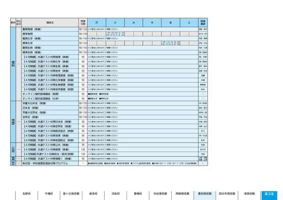 ●出願書類対策(必須受講)●面接対策(選択制)●小論文対策(選択制)●【プレミアム】過去問対策(選択制)●慶大対策<(法)FITA方式/(法)FITB方式/(文)自主応募制推薦>-名駅校千種校星ヶ丘現役館岐阜校浜松校豊橋校刈谷現役館岡崎現役館豊田現役館四日市現役館津現役館高3生90/150※ご都合にあわせてご視聴ください90/1501月〜)20:00〜21:304月〜)18:50〜21:30小山90/150※ご都合にあわせてご視聴ください90/15090/150※ご都合にあわせてご視聴ください90/150※ご都合にあわせてご視聴ください90909090909090909090※ご都合にあわせてご視聴ください※ご都合にあわせてご視聴ください※ご都合にあわせてご視聴ください※ご都合にあわせてご視聴ください※ご都合にあわせてご視聴ください※ご都合にあわせてご視聴ください※ご都合にあわせてご視聴ください※ご都合にあわせてご視聴ください●難関物理●標準物理●難関化学●標準化学90/150※ご都合にあわせてご視聴ください90/150※ご都合にあわせてご視聴ください90/150※ご都合にあわせてご視聴ください90/150※ご都合にあわせてご視聴ください※ご都合にあわせてご視聴ください※ご都合にあわせてご視聴ください※ご都合にあわせてご視聴ください※ご都合にあわせてご視聴ください※ご都合にあわせてご視聴ください※ご都合にあわせてご視聴ください※ご都合にあわせてご視聴ください※ご都合にあわせてご視聴ください※ご都合にあわせてご視聴ください90909090909015015090-難関物理(映像)標準物理難関化学(映像)標準化学難関生物(映像)標準生物(映像)【4月開講】共通テスト対策物理(映像)【4月開講】共通テスト対策化学(映像)【4月開講】共通テスト対策生物(映像)【4月開講】共通テスト対策地学(映像)【4月開講】共通テスト対策物理基礎(映像)【4月開講】共通テスト対策化学基礎(映像)【4月開講】共通テスト対策生物基礎(映像)【4月開講】共通テスト対策地学基礎(映像)オンライン個別指導講座(物理)オンライン個別指導講座(化学)早慶大日本史(映像)日本史(映像)早慶大世界史(映像)世界史(映像)【4月開講】共通テスト対策日本史(映像)【4月開講】共通テスト対策世界史(映像)【4月開講】共通テスト対策歴史総合(映像)【4月開講】共通テスト対策地理(映像)【4月開講】共通テスト対策地理総合(映像)【4月開講】共通テスト対策公共(映像)【4月開講】共通テスト対策倫理(映像)【4月開講】共通テスト対策政治・経済(映像)【4月開講】共通テスト対策情報Ⅰ(映像)総合型・学校推薦型選抜対策プログラム-理科-地歴---公民情報総合2ページ●2025年度/51/中部/豊田/高3・卒生/パターン6620/2025_51_4_449_11_20240815134738.csv●4校了時削除豊田教科申込区分講座名授業分数月火水木金土映像講映像講師師1月〜)19:10〜20:40中村4月〜)18:00〜20:40渡部・坂本佐々木・木村寺田・青野中村・小松向井・三浦牧島・西尾(健)乾・大學安達・西尾(源)唐牛・長井田島・松永加藤本瀬野黒美松永--大内・坂本(勝)田中・西川坂本(新)・沼田平尾・平松中垣・宮本大野・山口井上中村・中土居松本吉見佐々木河合小野・加賀佐藤・山家