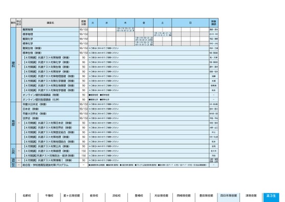 授業分数90/15090/15090/15090/150火水木金土日1月〜)19:50〜21:204月〜)18:40〜21:20岸1月〜)19:40〜21:104月〜)18:30〜21:10西浦1月〜)19:50〜21:204月〜)18:40〜21:20花田1月〜)19:50〜21:20若原4月〜)18:40〜21:2090/150※ご都合にあわせてご視聴ください90/150※ご都合にあわせてご視聴ください90909090909090909090※ご都合にあわせてご視聴ください※ご都合にあわせてご視聴ください※ご都合にあわせてご視聴ください※ご都合にあわせてご視聴ください※ご都合にあわせてご視聴ください※ご都合にあわせてご視聴ください※ご都合にあわせてご視聴ください※ご都合にあわせてご視聴ください●難関物理●標準物理●難関化学●標準化学90/150※ご都合にあわせてご視聴ください90/150※ご都合にあわせてご視聴ください90/150※ご都合にあわせてご視聴ください90/150※ご都合にあわせてご視聴ください※ご都合にあわせてご視聴ください※ご都合にあわせてご視聴ください※ご都合にあわせてご視聴ください※ご都合にあわせてご視聴ください※ご都合にあわせてご視聴ください※ご都合にあわせてご視聴ください※ご都合にあわせてご視聴ください※ご都合にあわせてご視聴ください※ご都合にあわせてご視聴ください90909090909015015090-●出願書類対策(必須受講)●面接対策(選択制)●小論文対策(選択制)●【プレミアム】過去問対策(選択制)●慶大対策<(法)FITA方式/(法)FITB方式/(文)自主応募制推薦>-名駅校千種校星ヶ丘現役館岐阜校浜松校豊橋校刈谷現役館岡崎現役館豊田現役館四日市現役館津現役館高3生映像講映像講師師渡部・坂本佐々木・木村寺田・青野中村・小松向井・三浦牧島・西尾(健)乾・大學安達・西尾(源)唐牛・長井田島・松永加藤本瀬野黒美松永--大内・坂本(勝)田中・西川坂本(新)・沼田平尾・平松中垣・宮本大野・山口井上中村・中土居松本吉見佐々木河合小野・加賀佐藤・山家難関物理標準物理難関化学標準化学難関生物(映像)標準生物(映像)【4月開講】共通テスト対策物理(映像)【4月開講】共通テスト対策化学(映像)【4月開講】共通テスト対策生物(映像)【4月開講】共通テスト対策地学(映像)【4月開講】共通テスト対策物理基礎(映像)【4月開講】共通テスト対策化学基礎(映像)【4月開講】共通テスト対策生物基礎(映像)【4月開講】共通テスト対策地学基礎(映像)オンライン個別指導講座(物理)オンライン個別指導講座(化学)早慶大日本史(映像)日本史(映像)早慶大世界史(映像)世界史(映像)【4月開講】共通テスト対策日本史(映像)【4月開講】共通テスト対策世界史(映像)【4月開講】共通テスト対策歴史総合(映像)【4月開講】共通テスト対策地理(映像)【4月開講】共通テスト対策地理総合(映像)【4月開講】共通テスト対策公共(映像)【4月開講】共通テスト対策倫理(映像)【4月開講】共通テスト対策政治・経済(映像)【4月開講】共通テスト対策情報Ⅰ(映像)総合型・学校推薦型選抜対策プログラム-理科-地歴---公民情報総合四日市教科申込区分講座名3ページ●2025年度/51/中部/四日市/高3・卒生/パターン6620/2025_51_4_435_11_20240815145553.csv校了時削除