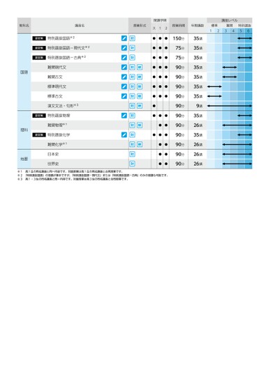 教科名講座名認定制特別選抜国語※2認定制特別選抜国語-現代文※2認定制特別選抜国語-古典※2国語理科地歴難関現代文難関古文標準現代文標準古文漢文文法・句形※3認定制特別選抜物理難関物理※1認定制特別選抜化学難関化学※1日本史世界史授業形式開講学期ス12授業時間年間講数標準難関1234特別選抜56講座レベル●●●150分●●●●●●●●●●●●●●●●●●●●●●●●●●●●●●●●●75分75分90分90分90分90分90分90分90分90分90分90分90分35講35講35講35講35講35講35講9講35講26講35講26講26講26講※1高1生の同名講座と同一内容です。対面授業は高1生の同名講座と合同授業です。※2「特別選抜国語」の受講が基本ですが、「特別選抜国語-現代文」または「特別選抜国語-古典」のみの受講も可能です。※3高1・3生の同名講座と同一内容です。対面授業は高3生の同名講座と合同授業です。