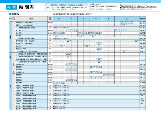 月火水木金土1月〜)16:50〜18:204月〜)15:40〜18:20依田1月〜)17:00〜18:304月〜)15:50〜18:30山内1月〜)18:10〜19:404月〜)17:00〜19:40坂本(勝)1月〜)19:10〜20:404月〜)18:00〜20:40沼田1月〜)18:10〜19:404月〜)17:00〜19:40小嶋1月〜)18:50〜20:204月〜)18:50〜21:30伊藤20:00〜21:30平尾(則)1月〜)19:00〜20:304月〜)19:00〜21:40山中※ご都合にあわせてご視聴ください※ご都合にあわせてご視聴ください※ご都合にあわせてご視聴ください※ご都合にあわせてご視聴ください※ご都合にあわせてご視聴ください※ご都合にあわせてご視聴ください※ご都合にあわせてご視聴ください※ご都合にあわせてご視聴ください※ご都合にあわせてご視聴ください映像講師ー大内・坂本(勝)田中・西川ー坂本(新)・沼田平尾(雅)・平松ーー中垣・宮本大野・山口井上中村・中土居松本吉見佐々木(洋)河合加賀・佐藤竹内・山家小●出願書類対策(必須受講)●面接対策(選択制)●小論文対策(選択制)●【プレミアム】過去問対策(選択制)●慶大対策<(法)FITA方式/(法)FITB方式/(文)自主応募制推薦>ー授業分数90/15090/15090/15090/15090/15090/15090/1509090909090909015015090ー東大日本史早慶大日本史日本史東大世界史早慶大世界史世界史東大地理政治・経済【4月開講】共通テスト対策日本史(映像)【4月開講】共通テスト対策世界史(映像)【4月開講】共通テスト対策歴史総合(映像)【4月開講】共通テスト対策地理(映像)【4月開講】共通テスト対策地理総合(映像)【4月開講】共通テスト対策公共(映像)【4月開講】共通テスト対策倫理(映像)【4月開講】共通テスト対策政治・経済(映像)【4月開講】共通テスト対策情報Ⅰ(映像)総合型・学校推薦型選抜対策プログラム-地歴・公民--情報総合新宿教科申込区分講座名5ページ●2026年度/51/東日本/新宿/高3・卒生/パターン6617/2026_51_3_329_11_20250817185653.csv校了時削除麹町新宿池袋秋葉原自由が丘吉祥寺調布立川町田厚木藤沢あざみ野金沢文庫横浜津田沼柏千葉大宮南浦和川越水戸高3生