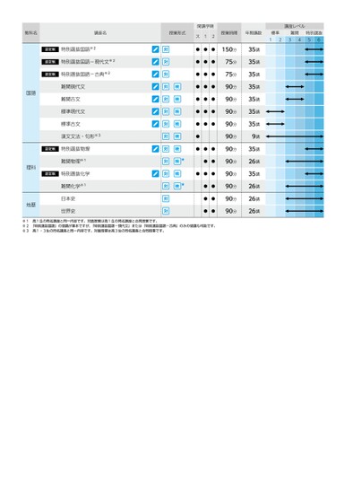 教科名講座名認定制特別選抜国語※2認定制特別選抜国語-現代文※2認定制特別選抜国語-古典※2国語理科地歴難関現代文難関古文標準現代文標準古文漢文文法・句形※3認定制特別選抜物理難関物理※1認定制特別選抜化学難関化学※1日本史世界史授業形式開講学期ス12授業時間年間講数標準難関1234特別選抜56講座レベル★★●●●150分●●●●●●●●●●●●●●●●●●●●●●●●●●●●●●●●●75分75分90分90分90分90分90分90分90分90分90分90分90分35講35講35講35講35講35講35講9講35講26講35講26講26講26講※1高1生の同名講座と同一内容です。対面授業は高1生の同名講座と合同授業です。※2「特別選抜国語」の受講が基本ですが、「特別選抜国語-現代文」または「特別選抜国語-古典」のみの受講も可能です。※3高1・3生の同名講座と同一内容です。対面授業は高3生の同名講座と合同授業です。