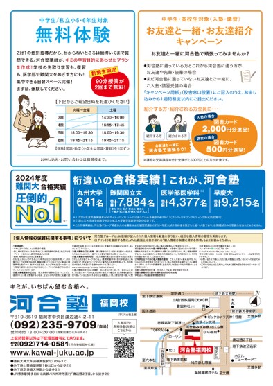 河合塾中学グリーンコース 福岡校のデジタルカタログ。講座案内や申込方法、授業料(受講料)、スケジュール、時間割に関する情報をお届けします。大学受験の予備校、学校法人河合塾の公式サイトをご利用ください。