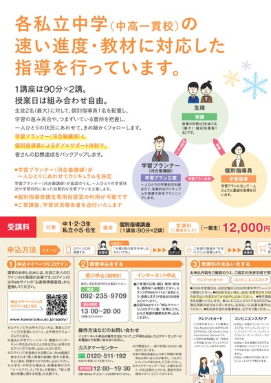 河合塾中学グリーンコース 福岡校 冬期講習のデジタルカタログ。講座案内や申込方法、授業料(受講料)、スケジュール、時間割など、冬期・直前講習(冬季・直前講習)に関する情報をお届けします。大学受験の予備校、学校法人河合塾の公式サイトをご利用ください。