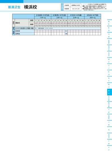 麹町新宿池袋秋葉原自由が丘吉祥寺調布立川町田厚木藤沢横浜あざみ野金沢文庫大宮南浦和川越柏津田沼千葉水戸3/24(日)~3/27(水)3/28(木)~3/31(日)4/2(火)~4/5(金)4/6(土)~4/7(日)1ターム2ターム3ターム4ターム12345612345612345612345609:00〜10:3011:00〜12:3013:20〜14:5015:20〜16:5017:20〜18:5019:20〜20:5009:00〜10:3011:00〜12:3013:20〜14:5015:20〜16:5017:20〜18:5019:20〜20:5009:00〜10:3011:00〜12:3013:20〜14:5015:20〜16:5017:20〜18:5019:20〜20:5009:00〜10:3011:00〜12:3013:20〜14:5015:20〜16:5017:20〜18:5019:20〜20:50中村※視聴可能期間:3/7(木)〜4/30(火)黒川斉藤講座名時限時間はじめての高校理科(化学基礎)映像)日本史世界史教科理科地歴横浜校●2024年度/春期講習/東日本/横浜/高2生/パターン14452024_58_3_321_32_20231201170526.csv/2ページ校了時削除