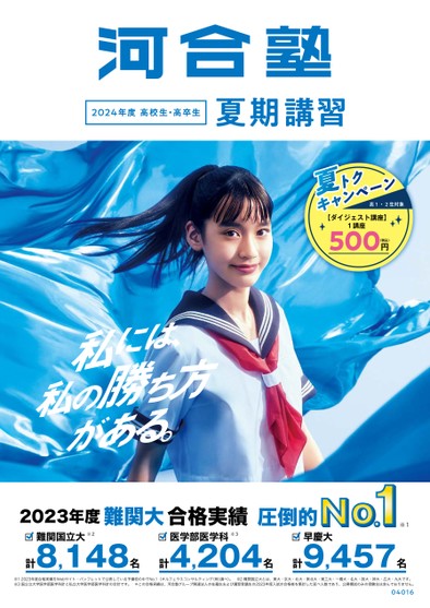 2024夏高1・2生対象【ダイジェスト講座】1講座500円(税込)2023年度難関大合格実績圧倒的計8,148名計4,204名難関国立大※2医学部医学科※3※1早慶大計9,457名※12023年度合格実績をWebサイト・パンフレットで公表している予備校の中でNo.1(オルフェウスコンサルティング(株)調べ)。※2難関国立大とは、東大・京大・北大・東北大・東工大・一橋大・名大・阪大・神大・広大・九大です。※3国公立大学医学部医学科計と私立大学医学部医学科計の合計です。*この合格実績は、河合塾グループ関連法人の在籍生および講習受講生の2023年度入試の合格者を集計した延べ人数であり、公開模試のみの受験生は含んでおりません。04016