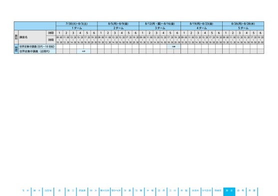 高2生講座名時限時間申込期限対面授業受講開始の4日前映像授業8/22(木)7/30(火)~8/3(土)8/5(月)~8/9(金)8/12(月・振)〜8/16(金)8/19(月)~8/23(金)8/26(月)~8/28(水)1ターム341256122ターム3456123ターム3456124ターム3456125ターム345609:0011:0013:2015:2017:2019:2009:0011:0013:2015:2017:2019:2009:0011:0013:2015:2017:2019:2009:0011:0013:2015:2017:2019:2009:0011:0013:2015:2017:2019:20〜〜〜〜〜〜〜〜〜〜〜〜〜〜〜〜〜〜〜〜〜〜〜〜〜〜〜〜〜〜10:3012:3014:5016:5018:5020:5010:3012:3014:5016:5018:5020:5010:3012:3014:5016:5018:5020:5010:3012:3014:5016:5018:5020:5010:3012:3014:5016:5018:5020:50世界史集中講義(古代―18世紀)世界史集中講義(近現代)矢野加藤教科地歴●2024年度/夏期講習/東日本/池袋/高2生/パターン3560南浦和津田沼柏金沢文庫2024_56_3_314_32_20240329103407.csv/2ページ自由が丘あざみ野吉祥寺秋葉原厚木町田立川調布横浜藤沢池袋校了時削除新宿麹町水戸千葉川越大宮