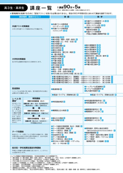 河合塾夏期講習時間割_関東 高3・高卒生版(講座一覧)
