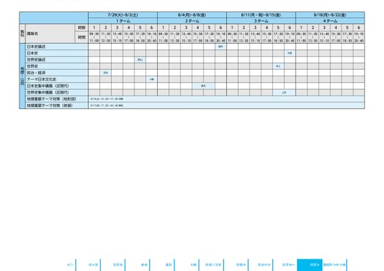 7/29(火)~8/2(土)1ターム341256128/4(月)~8/8(金)2ターム3456125612563ターム34この色のマスが授業のある時限です。8/11(月・祝)~8/15(金)●同一名称の講座は設置校舎・設置期間(ターム)・授業時間(時限)が異なっても同一内容です。●担当講師は変更になる場合がありますので、あらかじめご了承ください。●講師のフルネームはWebサイトでご確認ください。8/18(月)~8/22(金)4ターム3409:3011:2013:4015:3017:2019:1009:3011:2013:4015:3017:2019:1009:3011:2013:4015:3017:2019:1009:3011:2013:4015:3017:2019:10〜〜〜〜〜〜〜〜〜〜〜〜〜〜〜〜〜〜〜〜〜〜〜〜11:0012:5015:1017:0018:5020:4011:0012:5015:1017:0018:5020:4011:0012:5015:1017:0018:5020:4011:0012:5015:1017:0018:5020:40河合影山小倉8/16(土)13:40〜17:00河野8/17(日)17:20〜20:40高松高木高木中田井上上住時限時間高3生・高卒生講座名教科日本史論述日本史世界史論述世界史政治・経済テーマ日本文化史日本史集中講義(近現代)世界史集中講義(近現代)地理重要テーマ対策(地形図)地理重要テーマ対策(気候)地歴・公民●2025年度/夏期講習/近畿/大阪/高3・卒生/パターン34602025_56_5_511_11_20250324191244.csv/3ページ校了時削除●2025年度/夏期講習/近畿/大阪/高3・卒生/パターン34602025_56_5_511_11_20250324191244.csv/4ページ校了時削除八木西大寺岸和田堺東高槻豊中神戸三宮校京都校天王寺校上本町校大阪校東大・京大・医進館