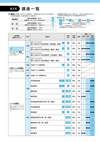 河合塾夏期講習時間割_近畿版(講座一覧)