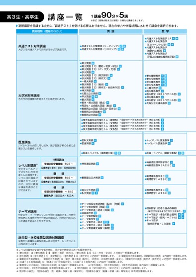 河合塾夏期講習時間割_近畿版(講座一覧)