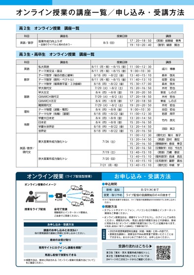 河合塾夏期講習時間割_近畿版(講座一覧)