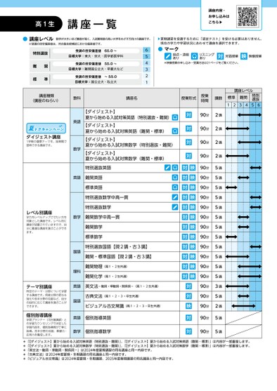 河合塾夏期講習時間割_西日本版(講座一覧)