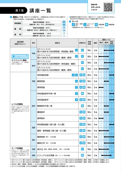 河合塾夏期講習時間割_東北版(講座一覧)