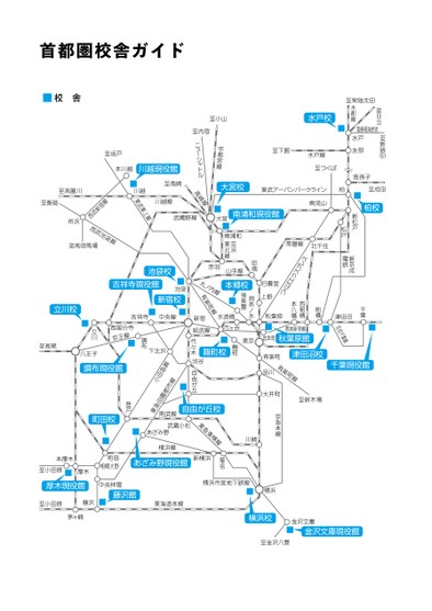 南流山柏校至新鉾田鹿島臨海鉄道水戸友部至日立水郡線至常陸太田我孫子水戸校水戸線至つくば至下館東武アーバンパークライン柏至成田新松戸松戸新京成電鉄千葉津田沼京成千葉線千葉現役館常磐線北千住船橋西船橋本八幡秋葉原エクスプレスつくば日暮里上野田端山手線本郷校南浦和京浜東北線御茶ノ水後楽園有楽町津田沼校有楽町線品川大井町至新木場東京岩本町都営新宿線秋葉原館京急本線武蔵小杉あざみ野横浜線東急東横線川崎横浜校金沢文庫金沢文庫現役館至金沢八景中央林間藤沢館東海道本線横浜市営地下鉄線横浜菊名新横浜あざみ野現役館町田相模大野本厚木至小田原厚木厚木現役館至小田原藤沢茅ヶ崎至高崎大宮校川越線高崎線川越東武東上線武蔵野線大宮南浦和現役館至高麗川至飯能所沢線宿新武西西武池袋線至高田馬場至小山宇都宮線至内宿ニューシャトル至坂戸本川越川越現役館首都圏校舎ガイド校舎池袋校赤羽新宿総武線水道橋市ヶ谷線ノ内丸有楽町線吉祥寺現役館池袋新宿校吉祥寺中央線麹町麹町校代々木下北沢調布渋谷自由が丘自由が丘校線急田小都園田線市急東南武線西国分寺京王線立川八王子調布現役館登戸町田校立川校至高尾