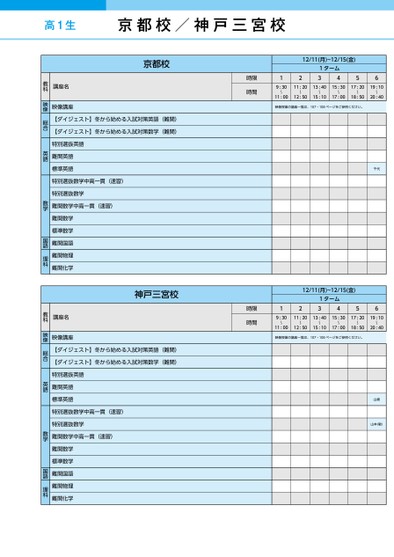 12/11(月)~12/15(金)121ターム34569:30〜11:0011:2013:4015:3017:2019:10〜〜〜〜〜12:5015:1017:0018:5020:40映像授業の講座一覧は、107・108ページをご参照ください。千代12/11(月)~12/15(金)121ターム34569:30〜11:0011:2013:4015:3017:2019:10〜〜〜〜〜12:5015:1017:0018:5020:40映像授業の講座一覧は、107・108ページをご参照ください。山崎山本(敏)時限時間時限時間京都校講座名教科映像講座映像【ダイジェスト】冬から始める入試対策英語(難関)【ダイジェスト】冬から始める入試対策数学(難関)特別選抜英語難関英語標準英語特別選抜数学中高一貫(速習)特別選抜数学難関数学中高一貫(速習)難関数学標準数学難関国語難関物理難関化学総合英語数学国語理科神戸三宮校講座名教科映像講座映像【ダイジェスト】冬から始める入試対策英語(難関)【ダイジェスト】冬から始める入試対策数学(難関)特別選抜英語難関英語標準英語特別選抜数学中高一貫(速習)特別選抜数学難関数学中高一貫(速習)難関数学標準数学難関国語難関物理難関化学総合英語数学国語理科京都校/神戸三宮校●2023年度/冬期講習/近畿/京都/高1生/パターン24352023_57_5_531_31_20230718144206.csv/1ページ校了時削除
