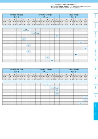 大阪校上本町校天王寺校京都校神戸三宮校豊中高槻堺東岸和田三田西大寺八木12/18(月)~12/22(金)122ターム34561212/25(月)~12/29(金)3ターム3456121/2(火)~1/6(土)4ターム34569:30〜11:0011:2013:4015:3017:2019:10〜〜〜〜〜12:5015:1017:0018:5020:409:30〜11:0011:2013:4015:3017:2019:10〜〜〜〜〜12:5015:1017:0018:5020:409:30〜11:0011:2013:4015:3017:2019:10〜〜〜〜〜12:5015:1017:0018:5020:40数野12/30の1日完結国松津留12/23の1日完結江川駒井数野上田福井山内杉原青木12/18(月)~12/22(金)122ターム34561212/25(月)~12/29(金)3ターム3456121/2(火)~1/6(土)4ターム34569:30〜11:0011:2013:4015:3017:2019:10〜〜〜〜〜12:5015:1017:0018:5020:409:30〜11:0011:2013:4015:3017:2019:10〜〜〜〜〜12:5015:1017:0018:5020:409:30〜11:0011:2013:4015:3017:2019:10〜〜〜〜〜12:5015:1017:0018:5020:40江川12/28・29の2日間信岡12/30の1日完結江川千代池田髙戸瀬島