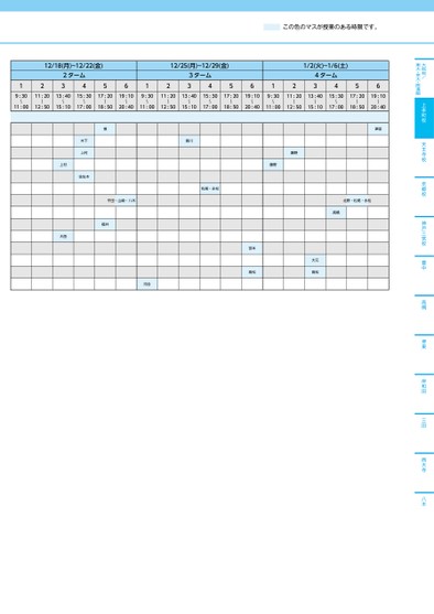 大阪校/東大・京大・医進館上本町校天王寺校京都校神戸三宮校豊中高槻堺東岸和田三田西大寺八木12/18(月)~12/22(金)122ターム34561212/25(月)~12/29(金)3ターム3456121/2(火)~1/6(土)4ターム34569:30〜11:0011:2013:4015:3017:2019:10〜〜〜〜〜12:5015:1017:0018:5020:409:30〜11:0011:2013:4015:3017:2019:1012:5015:1017:0018:5020:40〜〜〜〜〜9:30〜11:0011:2013:4015:3017:2019:10〜〜〜〜〜12:5015:1017:0018:5020:40慎木下上村佐佐木平田・山崎・八木福井上村大西香川松尾・永松藤野藤野津留北野・松尾・永松高橋宮本高松大元高松河合