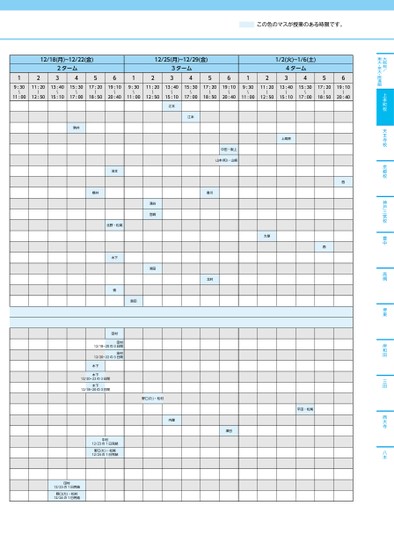 大阪校/東大・京大・医進館上本町校天王寺校京都校神戸三宮校豊中高槻堺東岸和田三田西大寺八木12/18(月)~12/22(金)122ターム34561212/25(月)~12/29(金)3ターム3456121/2(火)~1/6(土)4ターム34569:30〜11:0011:2013:4015:3017:2019:10〜〜〜〜〜12:5015:1017:0018:5020:409:30〜11:0011:2013:4015:3017:2019:1012:5015:1017:0018:5020:40〜〜〜〜〜9:30〜11:0011:2013:4015:3017:2019:10〜〜〜〜〜12:5015:1017:0018:5020:40江本江本香川北村駒井池本横井涌谷宮崎湘田北野・松尾木下慎島田上高原中田・阪上山本(和)・山崎西大學西田村田村12/18~20の3日間田村12/20~22の3日間木下木下12/20~22の3日間木下12/18~20の3日間中村12/23の1日完結野口(た)・松尾12/24の1日完結田村12/23の1日完結野口(た)・松村12/24の1日完結野口(た)・松村内藤平田・松尾澤田