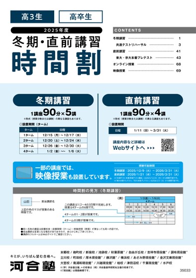 河合塾冬期・直前講習時間割_関東 高3生・高卒生版(時間割)